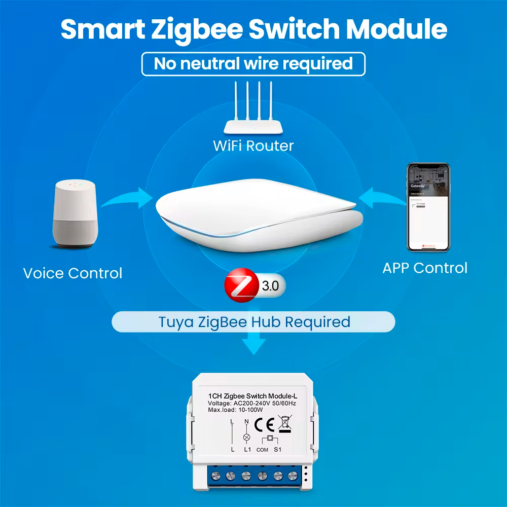 El Modulo de interruptor de pared Zigbee es un enchufe inteligente diseñado para proporcionar control remoto y automatización de interruptores de luz en el hogar. Utilizando el protocolo Zigbee, este enchufe permite gestionar dispositivos conectados a través de la plataforma Tuya y es compatible con asistentes de voz como Amazon Alexa y Google Assistant. Ofrece una solución eficiente para encender y apagar aparatos electrónicos, así como para integrar el control de dispositivos eléctricos en un sistema de automatización del hogar.