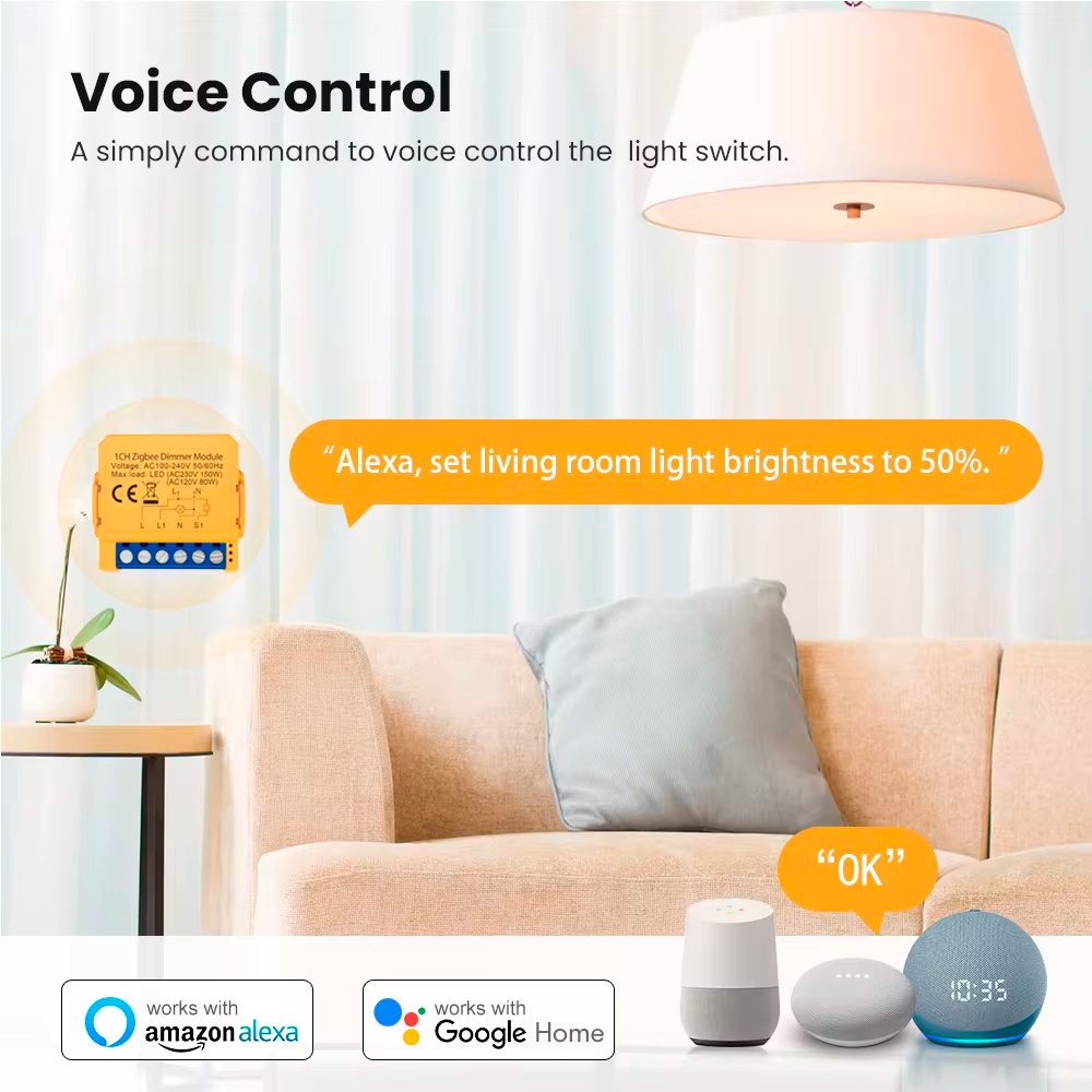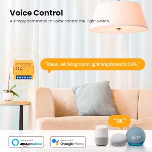 - Control por Voz: Permite encender, apagar y ajustar la luz mediante comandos de voz, facilitando el control sin necesidad de dispositivos manuales.